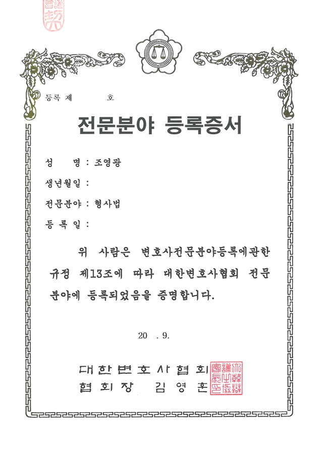 대한변호사협회에 형사전문변호사로 등록되었습니다.